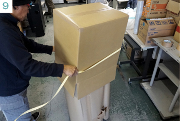 繊細な部分は、エアパッキン、段ボールを2重に巻いて保護。ずれないように商品の形に合わせて加工しながら梱包しています。