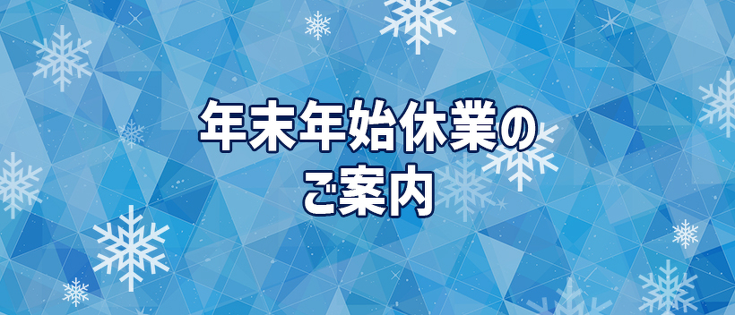 年末年始休業のご案内 2025年12月01日(月) 年末年始休業のご案内 平素は格別のご高配を賜り厚く御礼申し上げます。 誠に勝手ながら、12月27日(土)から翌年1月4日(日)までを年末年始休業とさせて頂きます。 休業中に頂いたご依頼・お問い合わせにつきましては、翌年1月5日(月)より以降順次対応致します。 期間中はご不便をおかけいたしますが、何卒ご了承くださいますようお願い申し上げます